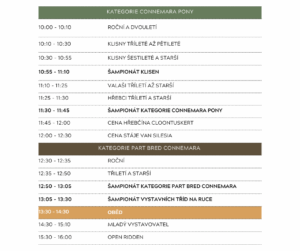 - CONNEMARA PONY: v této kategorii mohou být vystavována pouze zvířata zapsaná v PK Connemara pony v ČR nebo v zahraničí.